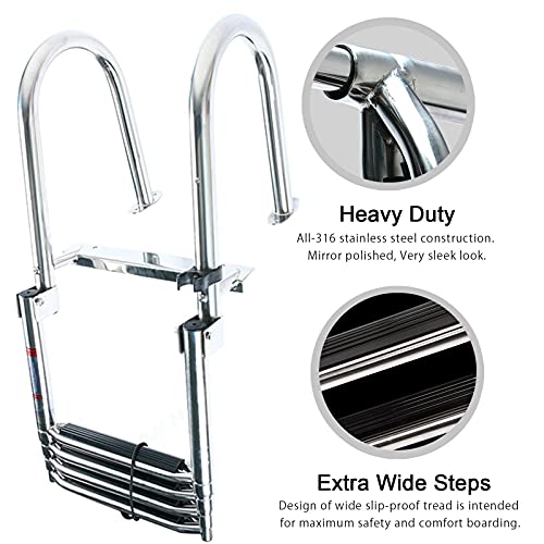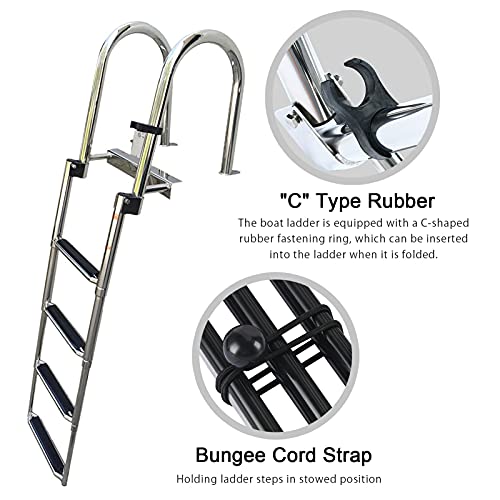 【Resistente acciaio inossidabile】: la scala pieghevole per barche a 4 gradini è realizzata in acciaio inossidabile di alta qualità. La scala del pontone del molo è robusta e resistente alla corrosione per un lungo servizio. (Può contenere fino a 440 libbre.)