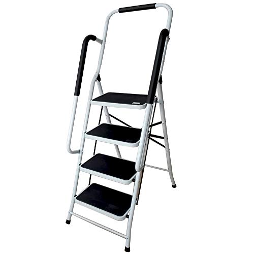 1. Scala a 4 gradini e gradino largo 38 x 26 cm con corrimano di sicurezza, facile da montare e utilizzare.
