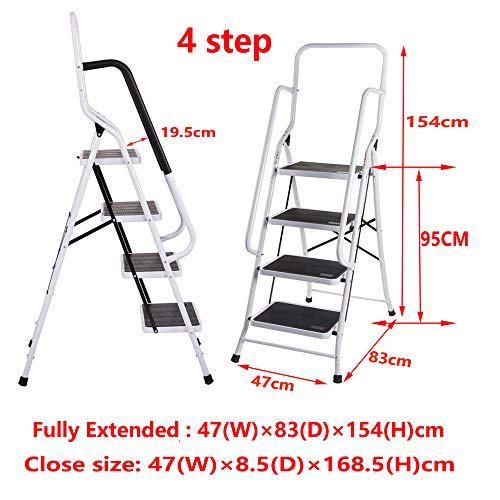 Scaletta pieghevole antiscivolo a 4 gradini in acciaio per corrimano di sicurezza per casa, scala giornaliera, altezza massima 95 cm