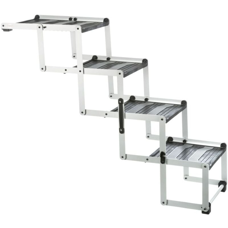 Scaletta pieghevole in 4 parti, in alluminio/tpr Marca: Trixie superficie antiscivolo anche in caso di pioggia facile da usare salvaspazio con protezione per paraurti regolabili 2 diverse profondità di pedata peso 4,9 kg in alluminio/plastica/TPR in conformità all'art. 18 sul Benessere animale (normativa austriaca)