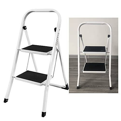 Scaletta pieghevole di sicurezza, a 2 gradini, portatile, con piedi antiscivolo, in acciaio robusto, capacità massima di 150 kg, ideale per casa/cucina/garage