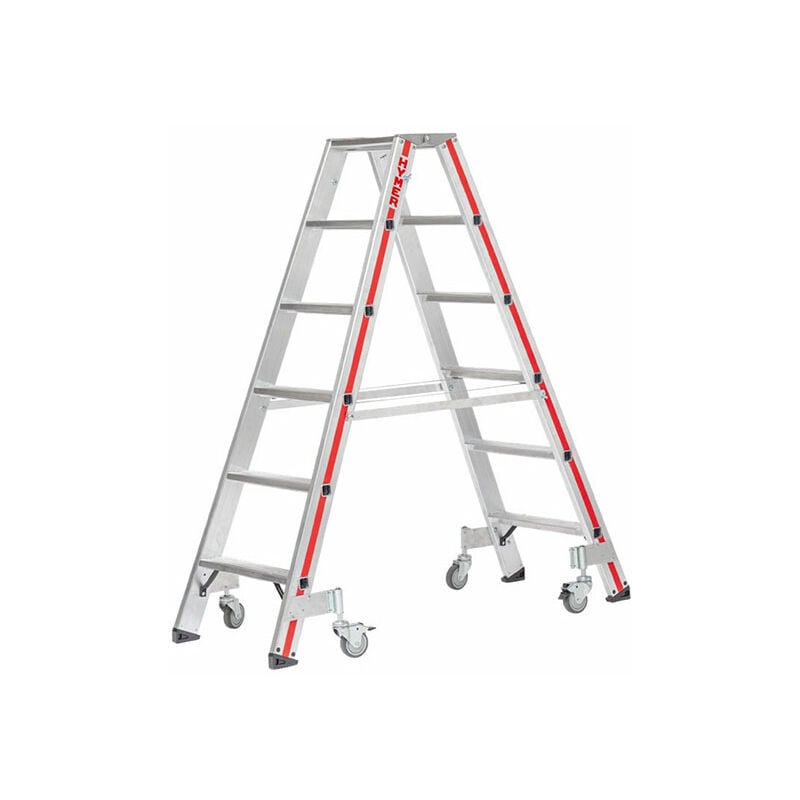 USO - Ambiente industriale per la manutenzione di macchinari. - Settore edile per lavori strutturali, construzione e rifiniture. - Estremamente robusta per un uso intensivo. CARATTERISTICHE - Gradini antisdrucciolo in profilo estruso 80mm di profondità. - Cinghia anti-apertura di larghezza 30mm. - Piedini antiscivolo con grande superficie di appoggio, facile sostituzione perchè avvitati ai montanti. - Articolazioni massive in alluminio rinforzato. - 4 ruote girevoli di cui 2 con freni (1 per tronco) per uno spostamento facile. ACCESSORI - 2 rotelle fisse per la massima sicurezza consigliate a partire dal modello 9 gradini. - Ideale per spostamenti dritti o con curve. NORMES EN-131 - Non si applica al modello 8024/2x2/4P. E' soltanto autorizzato salire sul gradino inferiore.