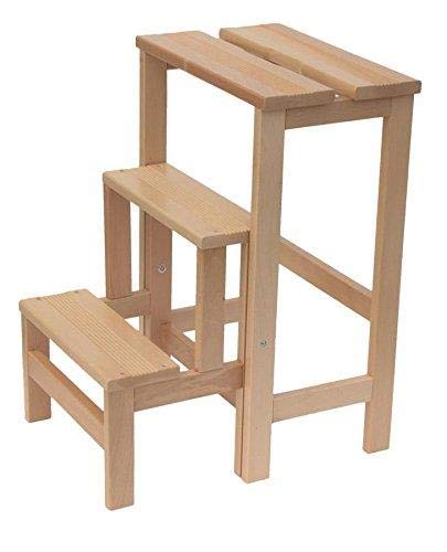 Scaletta Sgabello 3 gradini Ribaltabile in Legno Altezza 60 cm (Naturale)
