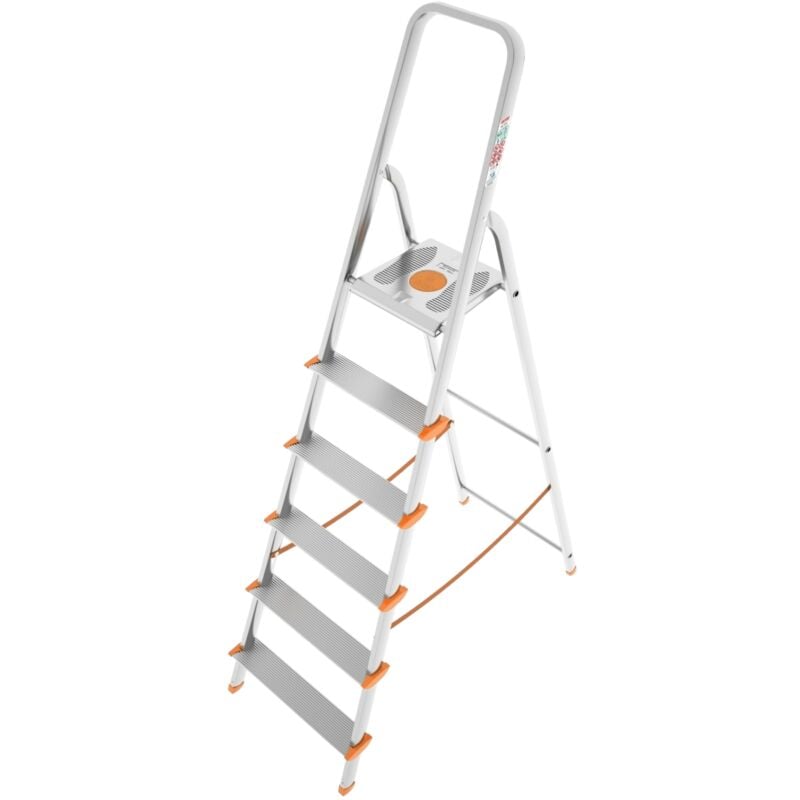 Marca Colombo - Gradini 6 - Portata max 150 Kg - Peso 5,5 Kg - Dimensione aperto 51 x 189 x 111 cm - Dimensione chiuso 51 x 201 x 12 cm - Materiale Alluminio Scaletto in alluminio composto da 6 gradini (compreso di piattaforma) con portata massima fino a 150 Kg. Lo scaletto da aperto ha un altezzafino all'ultimo gradino di 129 cm. Inoltre grazie alla sua struttura in alluminio ha un peso di soli 5,5 Kg, da aperto ha una dimensione di P 51 x H 189 x L 111 cm