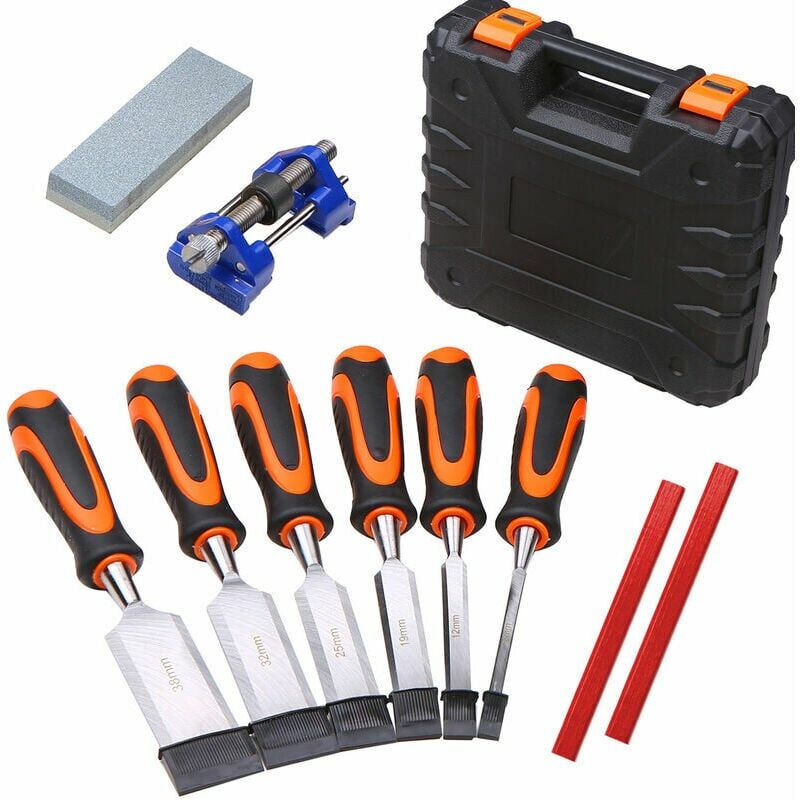 Set tutto in uno in legno con 6 scalpelli per intagliare, scalpelli guida per affilare, pietra per affilare e 2 matite. Versatile set di attrezzi da falegname, un must per qualsiasi falegname dilettante o professionista che desidera affinare il proprio mestiere. Le lame forgiate in acciaio 55# e il manico in TPR consentono un uso confortevole e garantiscono una lunga durata. ), 12 mm (1/2 pollici), 19 mm (3/4 pollici), 25 mm (1), 32 mm (1-1/4 pollici), (38 mm 1-1/2 pollici) . Lo scalpello in acciaio forgiato 55# è levigato e pronto per la levigatura, garantisce la massima nitidezza, resistenza, durata e lunga durata. Il tappo di percussione in acciaio nel gambo ti consente di colpire con un martello in modo sicuro quando è in uso. le tue forbici e le lame del pianificatore. Compagno perfetto per la pietra per affilare inclusa per mantenere i risultati dello scalpello facili da vedere., Comodo da usare: l'impugnatura ergonomica in plastica TPR progettata con trama metallica offre una