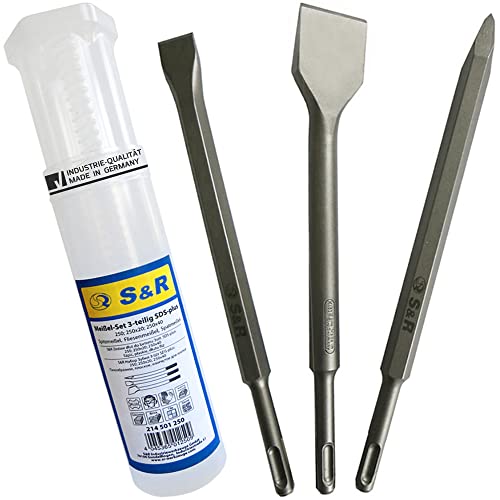 SET SCALPELLI SDS PLUS S&R MADE IN GERMANY ➡️ Il set di scalpelli S&R include 3 scalpelli made in Germany progettati per essere utilizzati con martelli e trapani SDS-Plus per un uso universale. Questa varietà di scalpelli consente di affrontare una vasta gamma di lavori, come rimuovere piastrelle, pavimenti o pareti.
