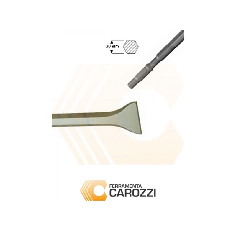Scalpello a cucchiaio attacco esagonale 30 mm adatto per effettuare lavori di demolizione e scalpellatura su calcestruzzo, pietra e muri e per la posa di condutture e la rimozione di materiale in grande quantità.ideale disegnato per martello demolitore Makita modelli HM1304, HM1400, HM1500, HM1317CL'attacco esagonale da 30 mm di diametro è pensato per grandi demolitori e si adatta perfettamente a sopportare potenze del colpo elevate, fino a 35 J.1 pezzo per confezione Misure: 115x400 mm Pezzi per confezione: 1