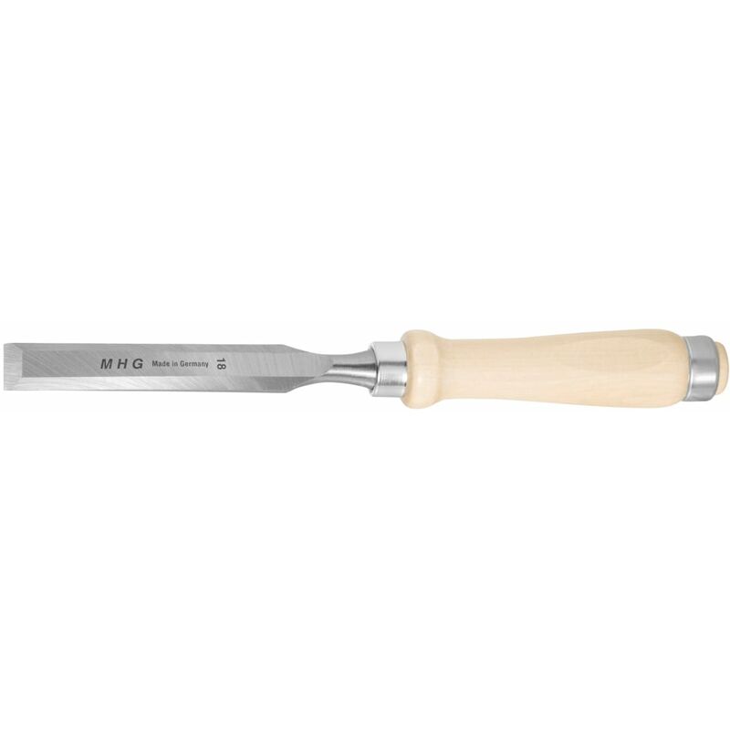 esecuzione rettificata lucida. Durezza e resistenza del tagliente collaudate singolarmente. Materiale: Acciaio speciale di altissima qualità. Dati tecnici Materiale impugnatura Legno Tipo di prodotto Scalpelli per legno Lunghezza complessiva, mm 260 Larghezza dei taglienti, mm 18