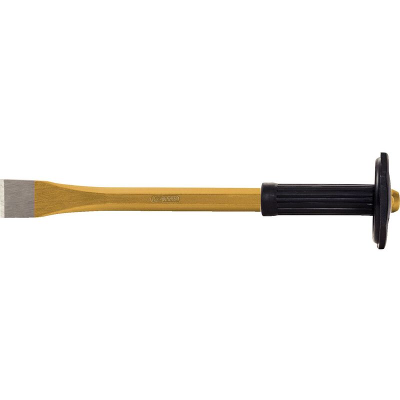 DIN 7254 forma B Ottagonale Tagliente riaffilabile Con impugnatura di protezione Estremità temprate Gambo laccato a fuoco color oro Lucidato Cromo-molibdeno Lunghezza totale L in mm 350.0 Design dello scalpello Flachmeißel Standard DIN 7254 Form B Versione testa d'impatto Temprato Larghezza del tagliente A 30 Forma dell'albero 8-kant Peso del tessuto 700 Diametro del gambo S in mm 18 Protezione della mano ja Dimensioni dell'imballaggio 1 Materiale1 Feinster Chrom Molybdän Stahl