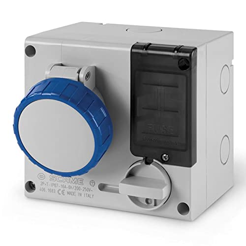 Scame Parre 506.1683 Presa Interbloccata da Parete 2P+T 16A 6H, IP67 con Fuse, 250 V, Blu