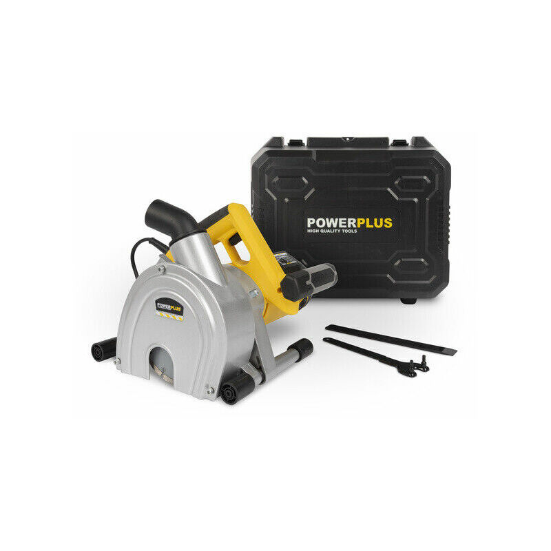SCANALATORE 1800W POWERPLUS 'POWX0650' Scanalatrice Multilama per tracce muro da 1800 W di potenza. Fornito con 2 Lame Diamantate con diametro 150 mm. Il Powerplus X0650 è ideale per fare scanalature in cemento, muratura, pareti o pavimenti piastrellati e per posizionare materiali elettrici e idraulici. Questo utensile è dotato di un cavo da 3 m, due dischi diamantati di alta qualità e una presa per l'aspirazione della polvere. Puoi collegare il tuo aspirapolvere alla presa sul retro dell'utensile, per un posto di lavoro pulito e sano. Il motore da 1800 Watt, con un massimo di 5000 rotazioni al minuto, ti dà tutta la potenza necessaria per tagliare in modo rapido, preciso ed efficiente. La distanza tra le lame e la profondità di taglio sono regolabili per un utilizzo a tutto tondo. La profondità di taglio massima è pari a 45 mm. Fornito in pratica valigetta. Caratteristiche Alimentazione: Elettrica Potenza in ingresso: 1800 W Rotazioni al minuto: 5000 max Diametro del disco: 150 mm
