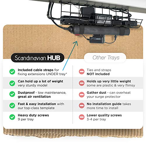 DESIGN ANTI SURRISCALDAMENTO: La forma del raccogli cavi da scrivania assicura il massimo flusso d'aria per prevenire il surriscaldamento dei tuoi cavi. Incluse con il cable organizer, fascette per cavi per fissare le estensioni sotto la griglia.