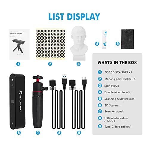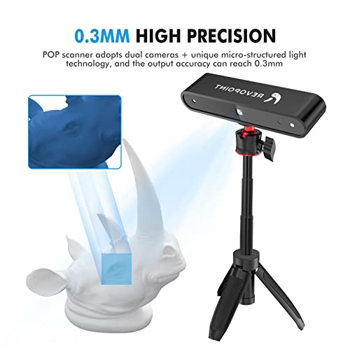 【Precisione fino a 0,3 mm】 Scanner POP 3D, la massima precisione a frame singolo può raggiungere 0,3 mm. Due sensori a infrarossi e un proiettore formano una serie di telecamere di profondità per catturare rapidamente la forma tridimensionale dell'oggetto e la telecamera RGB viene utilizzata per acquisire informazioni sulla trama.