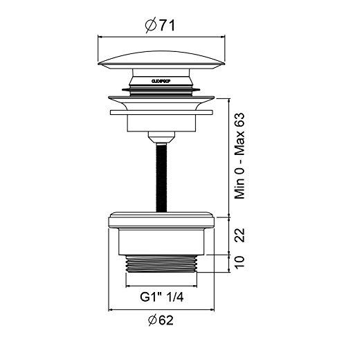 Scarico Lavabo Lavandino Bidet Bagno Clic Clac Universale In Plastica Cromato Cover Ceramica 1"1/4