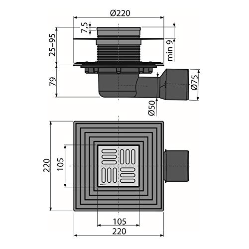 Scarico a pavimento per doccia, orizzontale, in acciaio inox, DN 50, sifone