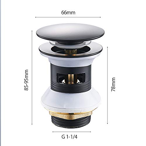 Set di Scarico Universale Valvola Pop Up Valvola di Scarico per Lavabo Piletta Scarico per Drenaggio con Tappo di Troppopieno per Lavello (Nero)