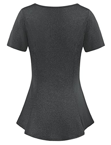 Scarlet Darkness, Camicia da donna in stile gotico, a maniche corte a sbuffo, con scollo a V, slim fit, con pizzo vintage, camicetta in stile vittoriano, XXL