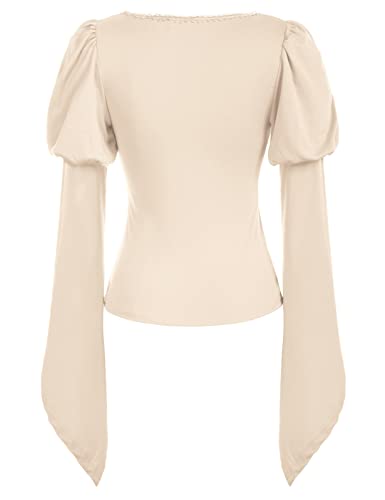 SCARLET DARKNESS Top gotico con maniche a sbuffo a maniche lunghe e scollo quadrato in pizzo decorato top, Albicocca, XXL