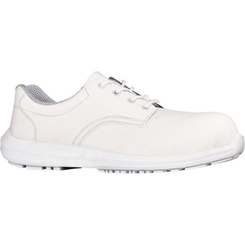 Secondo DIN EN ISO 20345:2011 · S2 SRC · Materiale superiore: Albero realizzato in Nuova Sicurezza Asciutto: materiale traspirante e idrorepellente · Fodera in tex alare: materiale traspirante con corridoi di ventilazione · Tappo di plastica con membrana traspirante · Plantare Bianco Ergo Dry: plantare continuo, anatomicamente sagomato, antibatterico e traspirante · suola comfort PU/PU estremamente resistente allo scivolamento e all'abrasione · secondo la DGUV 112-191 · senza metalli · Ampia 11 Altre caratteristiche tecniche: · Tappo di dito: plastica · Norma: EN ISO 20345