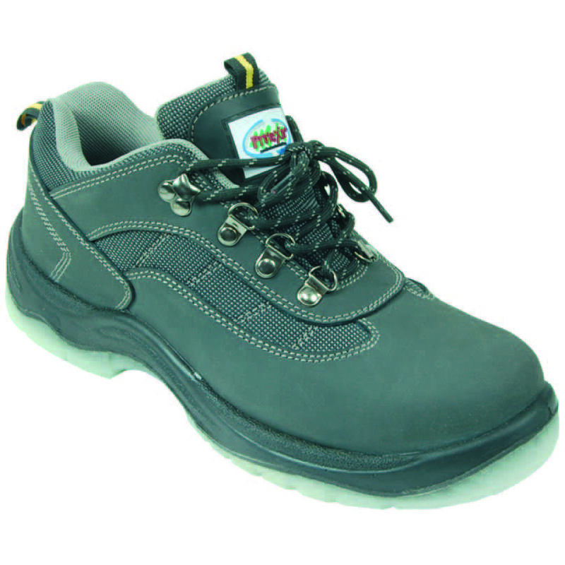 CE EN ISO 20345 S1P tomaia in pelle rovesciata nera con doppie cuciture ed inserti rinforzati in cordura, allacciatura normale - la marcatura EN ISO 20345 garantisce in termini di solidità e confort, un livello di prestazione definito da una norma europea - puntale in acciaio di protezione delle dita dei piedi che protegge contro gli urti provati con energia pari a 200 J - suola in gomma bidensità bianca antiscivolo, antistatico e resistente agli acidi ed oli - assorbimento di energia del tallone anti shock