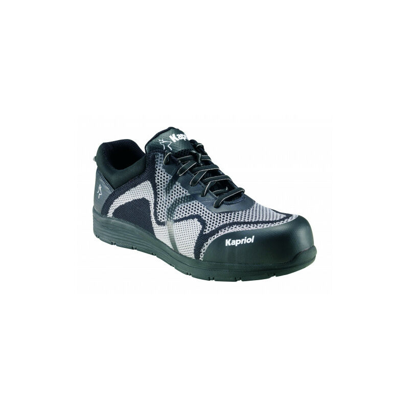 Scarpa di sicurezza innovativa per design e materiali utilizzati. molto leggera grazie alla totale assenza di parti metalliche. 100% metal free. i tessuti utilizzati sia per la tomaia che per la fodera la rendono particolarmente traspirante. intersuola in eva, suola in gomma antiscivolo, scolpiture autopulenti che garantiscono ottima aderenza su tutte le superfici, k-knit innovativo tessuto di derivazione outdoor, rinforzi in tpu. suola in eva / gomma, tomaia in tessuto k-knit con rinforzi in tpu