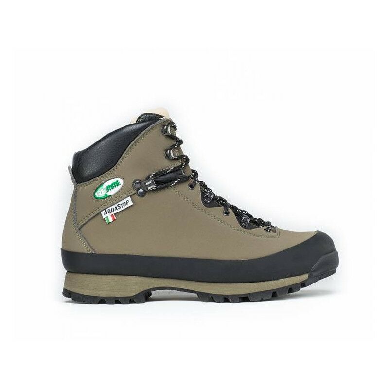 Dettagli Trekking in nabuk. Fodera AQUASTOP impermeabile e traspirante. Suola VIBRAM® in gomma microporosa ultraleggera con fascione in gomma. Colori Verde Taglie 37-47 Caratteristiche