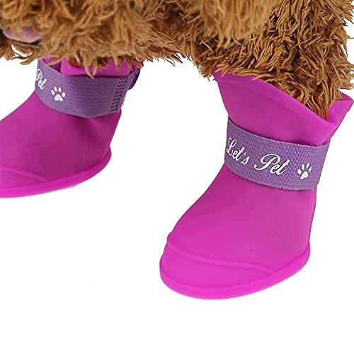 Set 4 scarpe anti-pioggia per piccoli animali domestici, in silicone impermeabile, antiscivolo M púrpura
