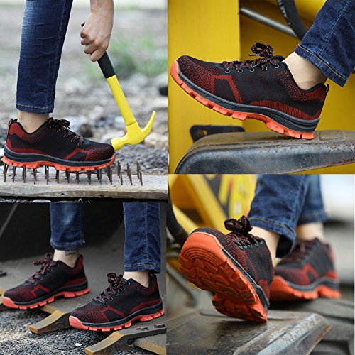 Scarpe Antinfortunistica Scarpe da Lavoro Uomo Donna Antinfortunistica con Punta in Unisex Scarpe Sportive di Sicurezza Rosso 38