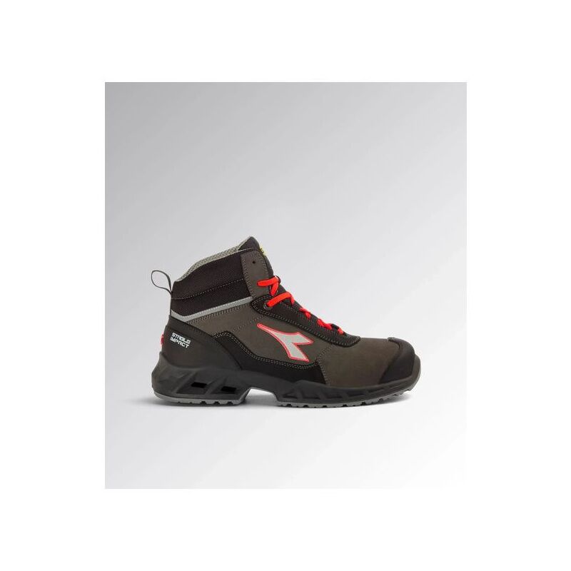 Taglie disponibili: 40, 41, 42, 43, 44, 45, 46 Calzatura di sicurezza mid-cut S3 in pelle crosta, idrorepellente con tecnologia di ammortizzazione Stable Impact System. Puntale in alluminio 200J. Calzata 11. Fodera Air Mesh tridimensionale in 100% poliestere con antiscalzante in microfibra, K-SOLE, plantare in PU foam estraibile, traspirante e con carboni attivi. ESD. Protezione della punta e del tallone in TPU.