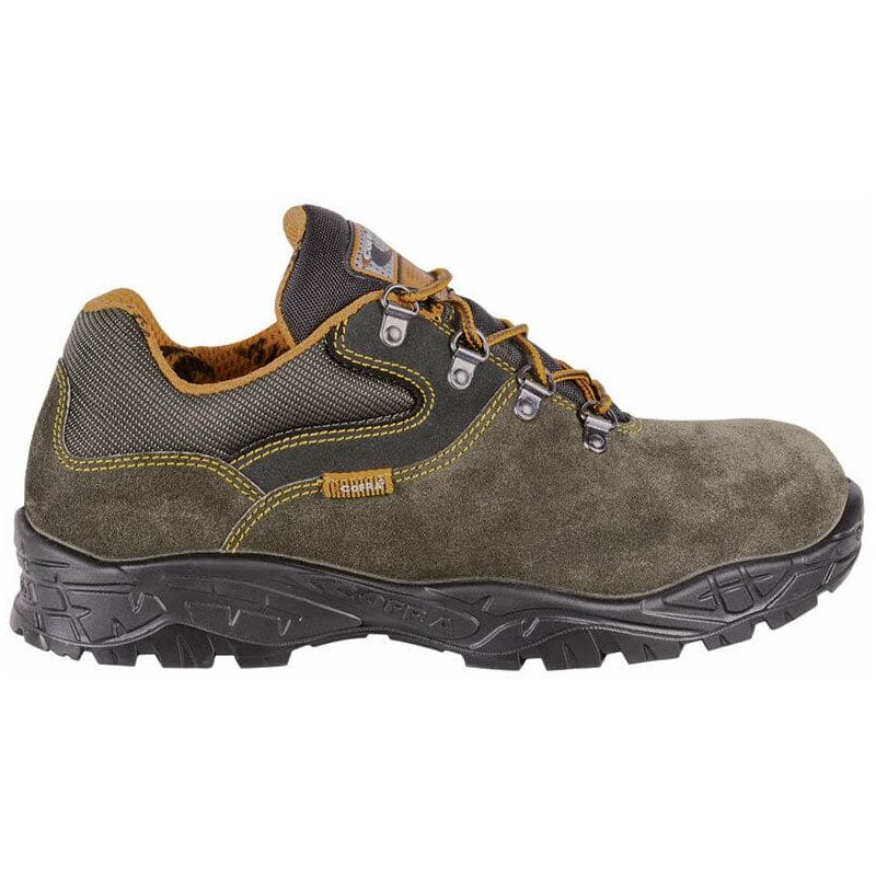 SCARPE ANTINFORTUNISTICHE LAVORO BASSE SCARPA COFRA PASS S1 P SRC TAGLIA 42 NORMATIVA: EN ISO 20345:2011 TOMAIA: pelle scamosciata FODERA ESTERNA: tessuto traspirante FODERA INTERNA: SANY-DRY ® 100% poliestere, tridimensionale, traspirante, assorbente e deassorbente, antiabrasione SOLETTA: EVANIT, con speciale mescola di EVA e nitrile, ad elevata portanza e spessore variabile (12mm - 8mm - 3,8mm). Termoformata, anatomica, forata e rivestita in tessuto altamente traspirante. Antistatica grazie ad uno specifico trattamento superficiale e a cuciture realizzate con filati conduttivi SUOLA: poliuretano bidensità PUNTALE: acciaio resistente a 200 J LAMINA: non metallica APT Plate - Zero Perforation CALZATA: 11 Mondopoint PERFORMANCE - PLUS TECNICI: Italian Leather TAGLIA: 42