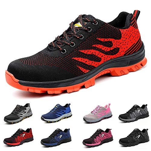 Scarpe Antinfortunistiche Uomo Donna S3 Scarpe da Lavoro con Punta in Acciaio Leggere Traspiranti Sneaker Estive Scarpe Sportive di Sicurezza Nero Blu Grigio 113Red-47