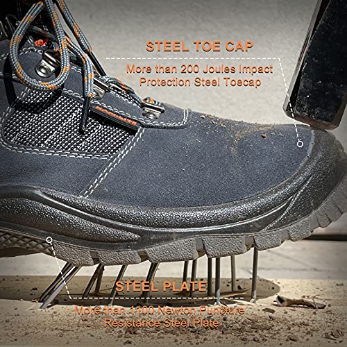TOMAIA IN PELLE SCAMOSCIATA GRIGIO: il materiale superiore degli stivali da lavoro da uomo è in pelle scamosciata grigia, che ha una migliore sensazione di morbidezza e traspirabilità. Una buona traspirabilità impedisce ai piedi di sentirsi soffocanti e bagnati.