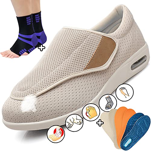 Scarpe Artrite Gonfia Edema Diabetici Ortopediche Scarpe per Anziani Diabetici Insieme a Calze a Compressione per Fascite Plantare Scarpe Diabetici Uomo Estive,Beige,44.5EU