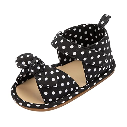 Scarpe per bambini con tacco aperto e bowknot a pois stampati, scarpe prime estive per bambini, sandali piatti, sandali bianchi per bambine, Nero, 0 Monate
