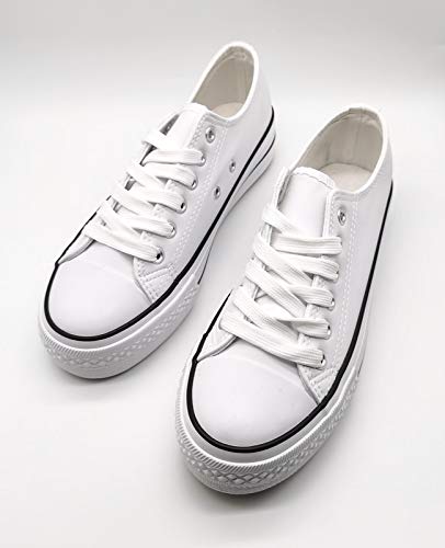 Scarpe bianche nere da donna con plateau in similpelle suola doppia scarpe sportive plateau donna, Bianco nero, 36 EU