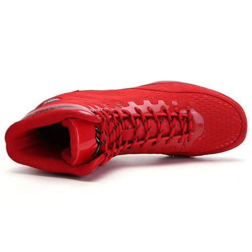 XFQ Scarpe Da Boxe, Professione Wrestling Di Addestramento Di Combattimento Stivale Leggero E Traspirante Buffer Unisex Squat Fitness Sneakers,Rosso,43EU