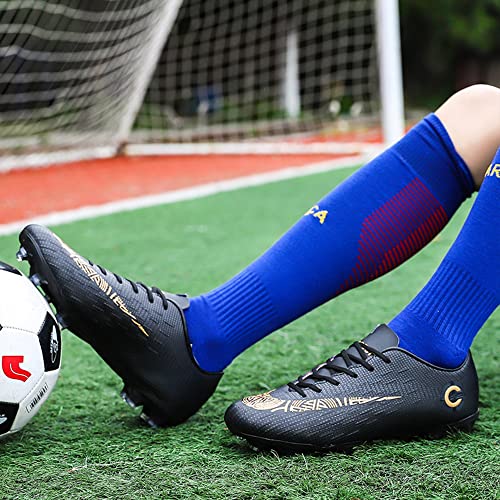 Scarpe da Calcio da Uomo da Donna Scarpe da Calcio per Interni da Esterno da Atletica Scarpe con Punte Unisex Durevole Leggero,Spike Black,34 EU