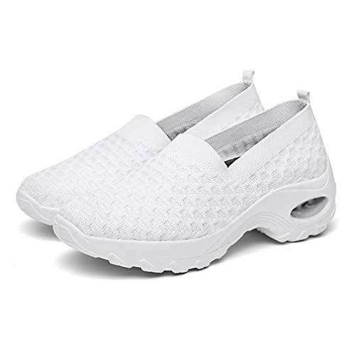 Scarpe da Camminata Donna Sneakers Running Basse Tennis Sportive Gym Fitness Sportive Zeppa Outdoor Scarpe Passeggio,Bianco a,36 EU