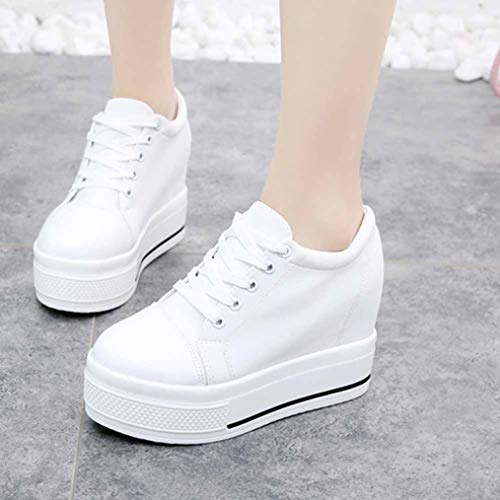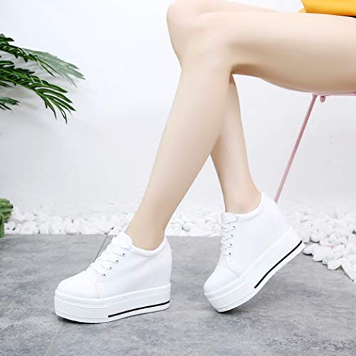 Scarpe Casual da Donna Bianche Moda Tela Allacciata Punta Tonda Bassa Nascosta Tacco Alto 10 cm Zeppa Scarpe Singole Piattaforma Sneakers Donna