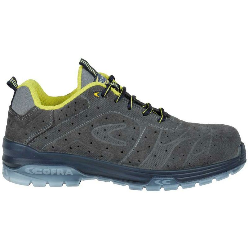 Scarpe basse S1P COFRA-20560-000-MORANDI -NORMATIVA: EN ISO 20345:2011 -TOMAIA: pelle scamosciata forata -FODERA ESTERNA: tessuto traspirante -FODERA INTERNA: tessuto 100% poliammide, indemagliabile, antibatterico, assorbente e deassorbente, traspirante, antiabrasione -SOLETTA: EVANIT, con speciale mescola di EVA e nitrile, ad elevata portanza e spessore variabile (12mm - 8mm - 3,8mm). Termoformata, forata e rivestita in tessuto altamente traspirante. Antistatica grazie ad uno specifico trattamento superficiale e a cuciture realizzate con filati conduttivi -SUOLA: poliuretano/TPU -PUNTALE: non metallico TOP RETURN resistente a 200 J -LAMINA: non metallica APT Plate - Zero Perforation -CALZATA: 11 Mondopoint -PERFORMANCE - PLUS TECNICI: 100% Metal Free, Anti-torsion Support, DGUV 112 - 191, Italian Leather