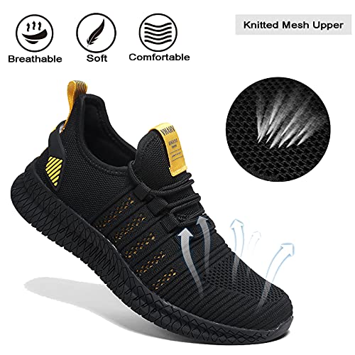 Scarpe da Corsa da Uomo Scarpe da Ginnastica in Gomma Nera per Scarpe da Ginnastica alla Moda, Palestra, Tennis, Casual, Sport, Lavoro e Jogging (Nero Giallo, Numeric_44)
