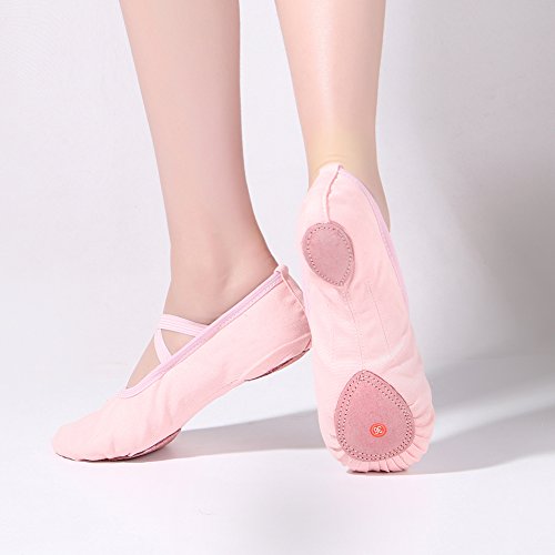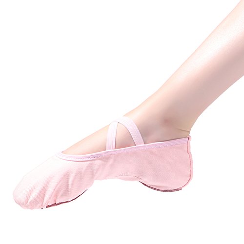 Scarpe Danza Classica Tela Scarpette Ballo Mezze Punta Suola Spezzata Ginnastica Ballo per Bambini Ragazze Donna Adulto Rosa 23