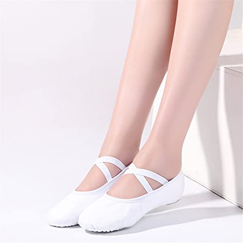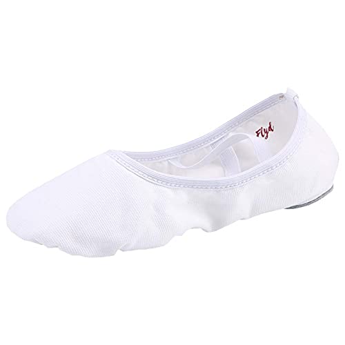 Scarpe Danza Classica Tela Scarpette Ballo Mezze Punta Suola Spezzata Ginnastica Ballo per Bambini Ragazze Donna Adulto Bianco 32