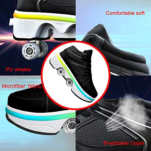 Scarpe con Deformazione Multifunzionale Quad Skate LED Pattini A Rotelle Pattinaggio Calzature Sportive da Esterno per Bambini, Donne, Uomini