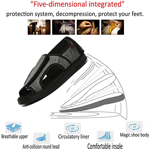 Scarpe Diabetiche Donna Regolabile Edema Scarpe Antiscivolo Open Toe Traspirante Ortopedica Pantofole per Anziani Artrite Piedi Gonfiati Fascite Ortopedica Scarpa,Grigio,34