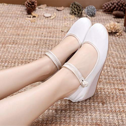Scarpe da Donna con Zeppa 6 CM Moda Cinturino con Fibbia di Canapa Bianca Punta Bassa Punta Tonda Fondo Morbido Antiscivolo Scarpe da Lavoro Singole Scarpe Casual da Donna