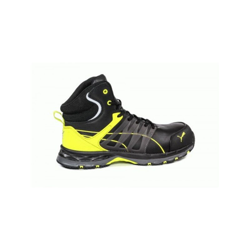 PUMA SAFETY est de nouveau au cœur des tendances du moment. Derrière leur design primé étrange se cache une efficacité sans faille due à un équipement et un confort innovants, La semelle intermédiaire IMPULSE FOAM® joue le rôle d'amortisseur et de récupérateur d'énergie qu'elle restitue jusqu'à 55 % au porteur des chaussures. Protection: embout en fibre de verre et semelle anti-perforation souple FAP® Plus: ESD, sans métaux, éléments réfléchissants, protection résistante à l‘abrasion pour la partie d'orteil et de talon Tige: cuir pleine fleur lisse de haute qualité avec renforcement en TPU Doublure: BreathActive doublure multifonctionelle Assie du pied: evercushion® BA Semelle: semelle en caoutchouc MOTION IMPULSE - résistante à la chaleur jusqu‘à 300°C et antidérapante, semelle intermédiaire de deux couches individuelles d'IMPULSE.FOAM® pour une absorption maximale des chocs, une stabilité excellente et un confort idéal