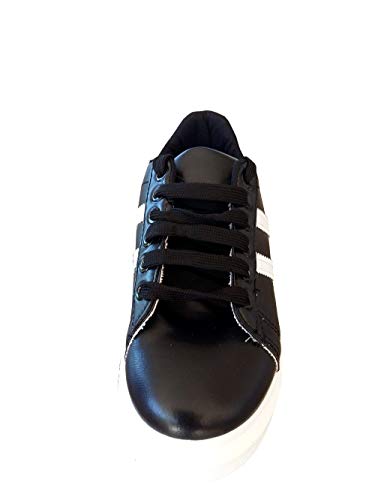Scarpe da Ginnastica - Donna - Ecopelle - Colore Nero - Strisce Bianche - Taglia 36 EU - Idea Regalo Compleanno - Natale - Festa