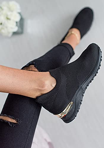 Scarpe da ginnastica da donna con zeppa, da corsa, scarpe da ginnastica comode, colore nero