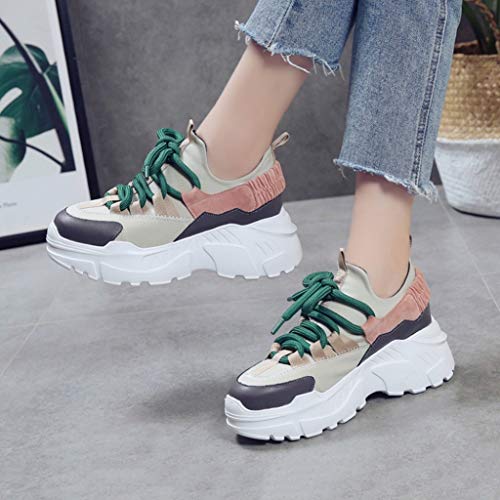 Scarpe da Ginnastica Grosse da Donna Colore Misto Pu Trends Alta Piattaforma Primavera Autunno Stringate Scarpe Casual Sportive da Esterno Basse